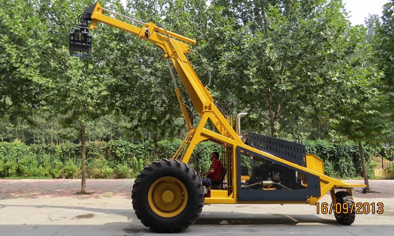 Log grapple of the HY 5800 wood log grapple loader is rotational designed, which can achieve quick stacking and loading of irregularly arranged logs. The loader can rotate at 360 degrees on the spot and the front grapple can be side mounted, with less work place. It also has strong climbing capacity to adapt to various working conditions covering flat, sloping and bumpy roads.