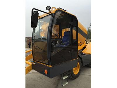 The mixer is composed of chassis, transmission system, hydraulic system, frame, mixing tank, charging and discharging device, water supply system, operating system, human ladder etc.. The front end of the mixing tank is connected and installed with the reducer on the front of the frame, and the back end is supported by two riding wheels installed in the back of the frame.
