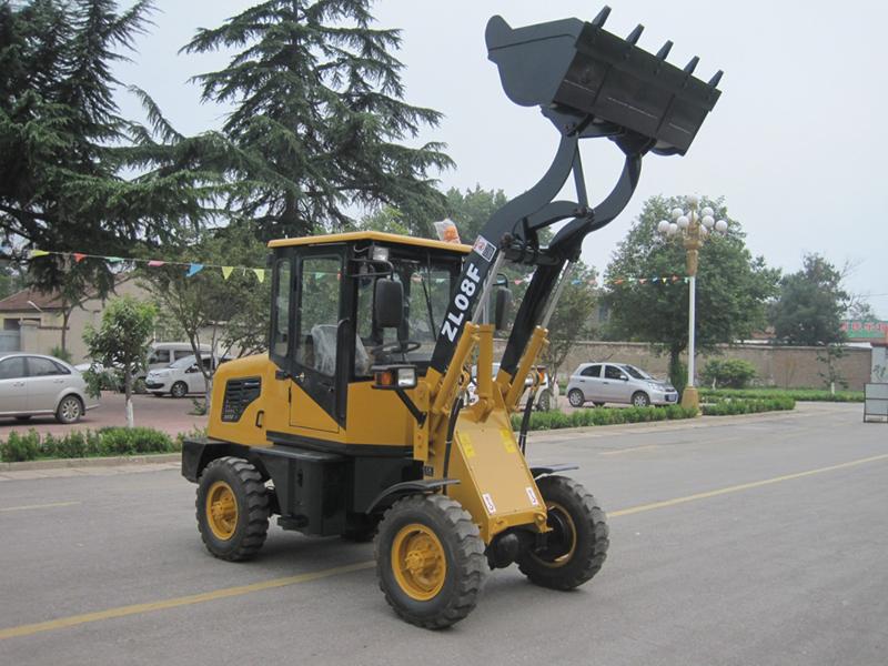 The loading weight of the ZL-08F wheel loader is 800kg. with small turning radius, the wheel loader can adapt to operations in narrow space and thus be widely used in the construction of agricultural engineering as well as medium and small buildings, such as highways, mines, brick and tile factories, urban construction, kilns, stone factories, prefabricated cement parts factories.