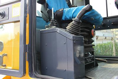 The front bucket is designed with a convenient tailgate, which can prevent the materials from falling during work. If different jobs requirements need to be satisfied, a fast connector can also be chosen to replace various loader mount attachments for jobs of different functions, such as snow bucket, fork.