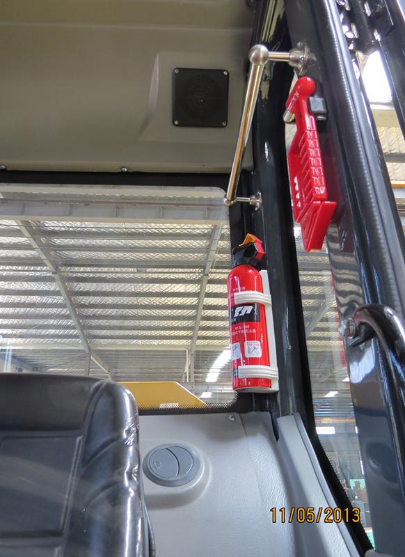 6. The transparent spacious cab provides better working environment for driver, where configured with a fire extinguisher and a safety hammer.