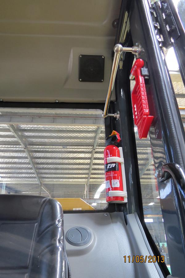 6. The transparent spacious cab provides better working environment for the driver, where a fire extinguisher and a safety hammer are equipped.
