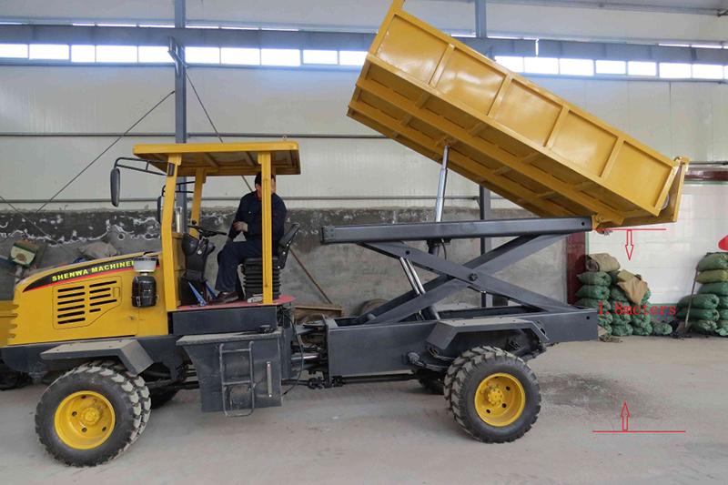 The 4 wheel drive dump truck has a loading capacity of 4000kg. Adopting four wheel drive, with strong power, the truck can adapt to different conditions of fields, usually applied to transport heavy objects on muddy roads, ice roads.