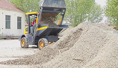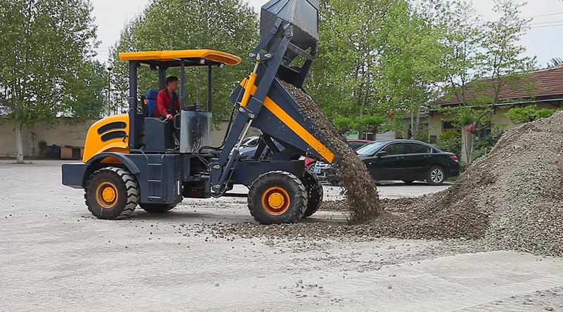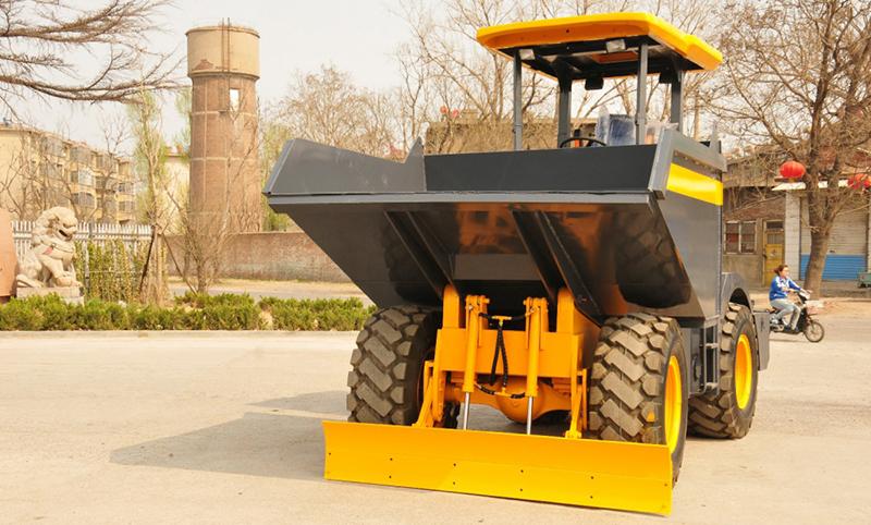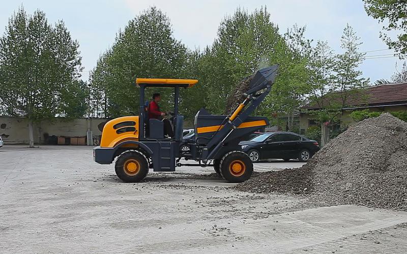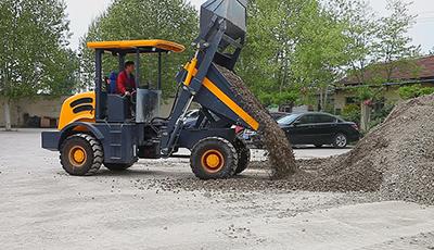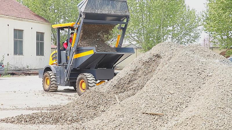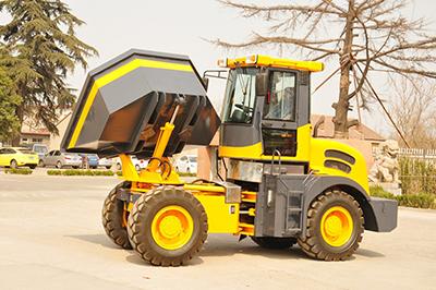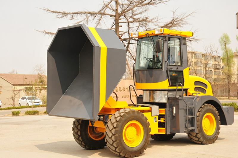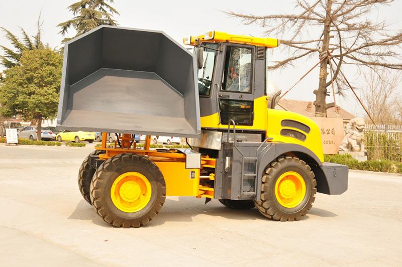 The wheel tipping dumper has a rated loading weight of 6000kg, and the prepositive bucket can rotate, dump freely, perfectly suitable for the loading and unloading and short distance transportation of various materials.